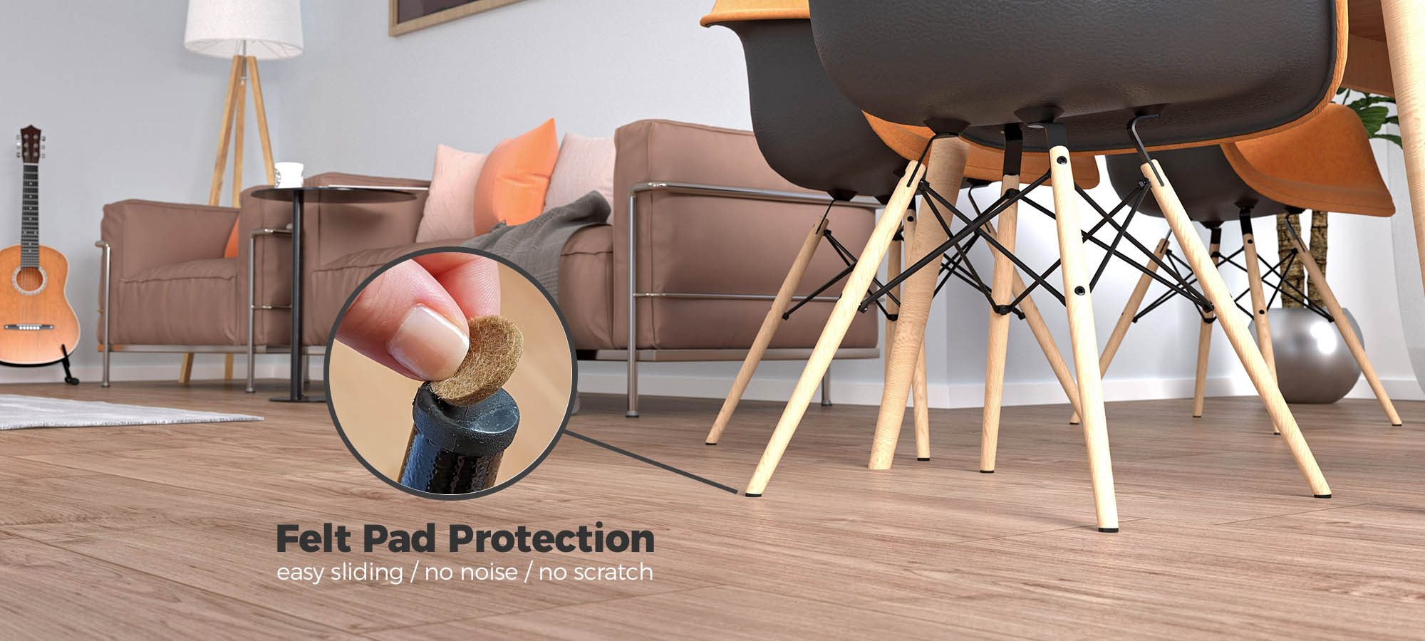 Protects the floor, prevents scratches and noise. Your furniture slides easily.
